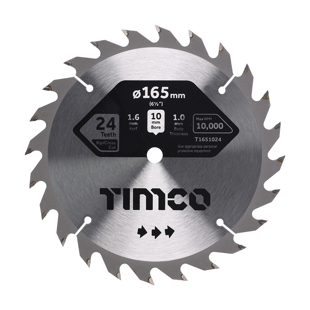 165x10x24T Hand Held Circular Saw Blade Wood/Board Medium Cut Timco