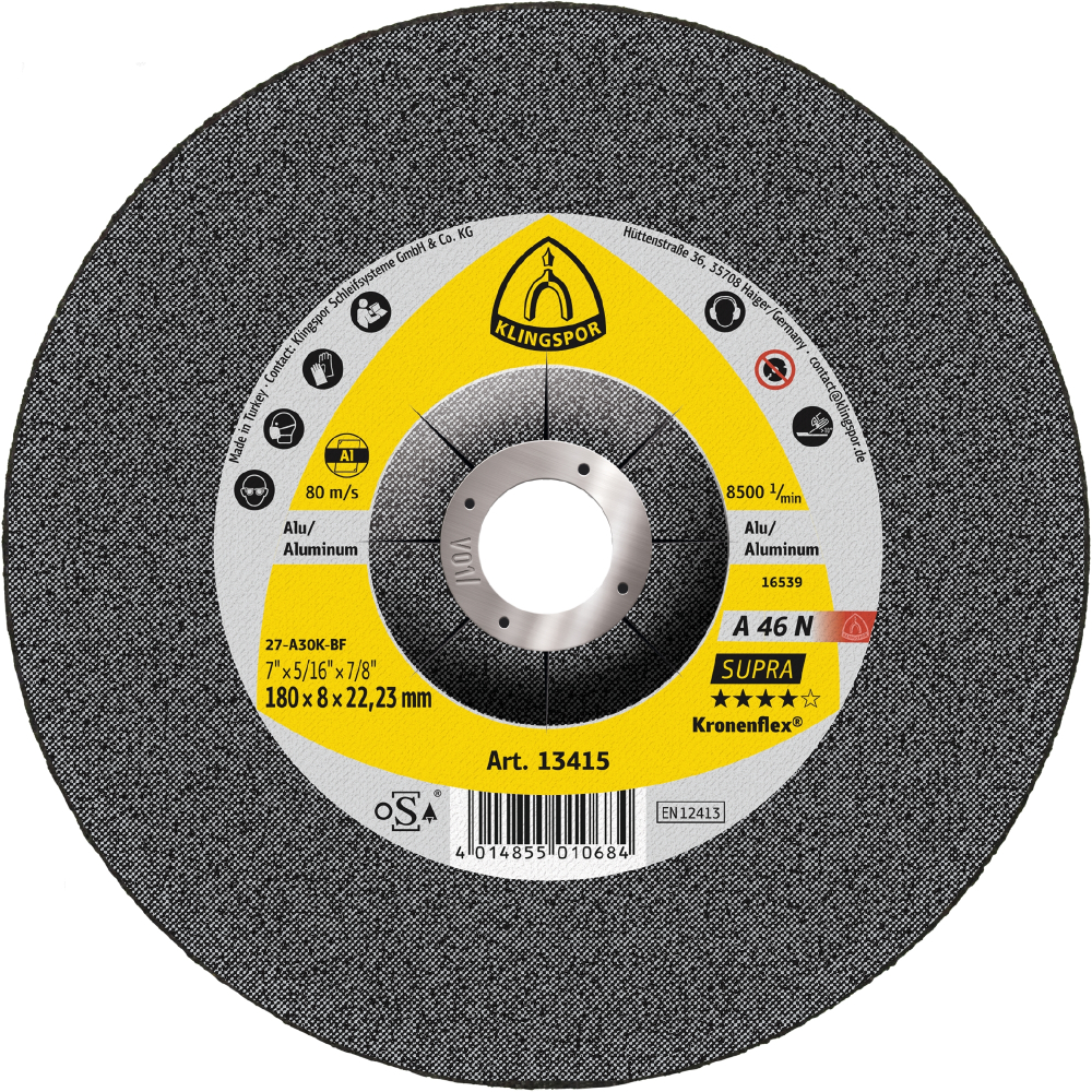 180x8x22.23 Aluminium Depressed Centre Grinding Disc A46N SUPRA Klinspor Pack 10